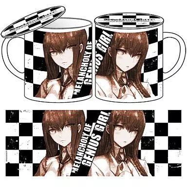 Una taza con una tapa diseñada por Marisu Makise (comúnmente conocida como Christina), un brillante científico y asistente del protagonista Okabe, en ropa informal y chaleco blanco. ¿Es perfecto para tomar Dr. Pepper entre estudios?