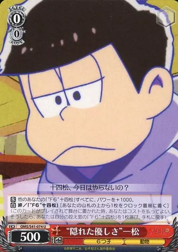 Nombre comercial en japonés: ヴァイスシュヴァルツ/U/キャラ/ブースターパック おそ松さん OMS/S41-074[U]:“隠れた優しさ”一松