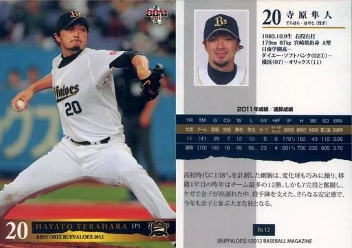 Nombre comercial en japonés: BBM/レギュラーカード/オリックス・バファローズ/BBM2012 オリックス・バファローズ Bs12[レギュラーカード]:寺原隼人