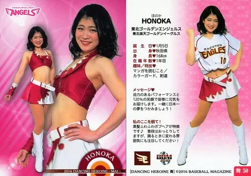 Nombre comercial en japonés: BBM/レギュラーカード/東北ゴールデンエンジェルス/BBM2016 プロ野球チアリーダーカード DANCING HEROINE -舞- 舞50[レギュラーカード]:HONOKA