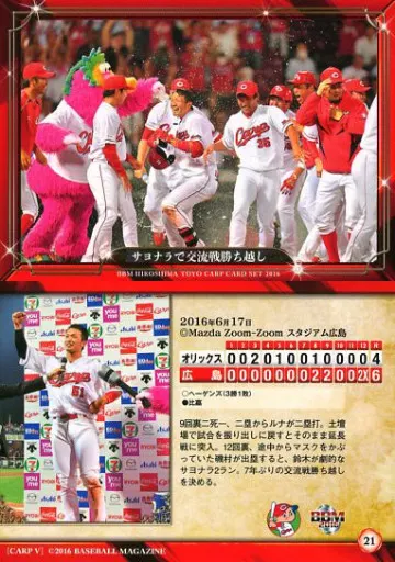 Nombre comercial en japonés: BBM/レギュラーカード/BBM2016 広島東洋カープ 大願成就 21[レギュラーカード]:サヨナラで交流戦勝ち越し