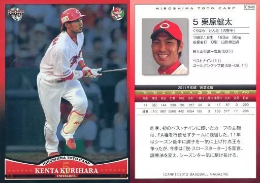 Nombre comercial en japonés: BBM/レギュラーカード/BBM2012 広島東洋カープ C040[レギュラーカード]:栗原健太(パラレル版)