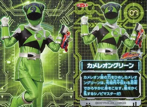 Nombre comercial en japonés: アニメ系トレカ/宇宙戦隊キュウレンジャーカードガム 07[-]:カメレオングリーン