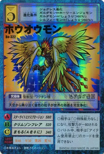 Nombre comercial en japonés: 旧デジモンカードゲーム/デジモンカード/デジタルモンスターカードゲーム ブースター7 戦慄の皇帝竜 Bo-322:ホウオウモン