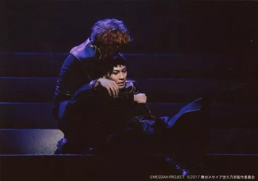 Daishi Sugie, Yūki Izawa (Ryō Ariga) / Live photo, whole body, sitting, clothing black, Sugie back, hand shoulder, background black, Character Cter shot / Stage "Mesaya - Yukyunotoki -" in the drama, bromide set D
