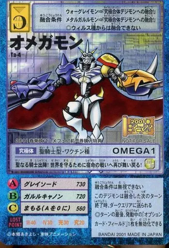 Nombre comercial en japonés: 旧デジモンカードゲーム/デジモンカード/デジタルモンスターカードゲーム 2001年春東映アニメフェア前売券購入特典 Ta-4:オメガモン