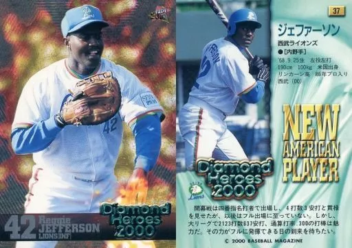 Nombre comercial en japonés: BBM/レギュラーカード/西武ライオンズ/BBM2000 Diamond Heroes(ダイヤモンドヒーローズ) 37[レギュラーカード]:ジェファーソン