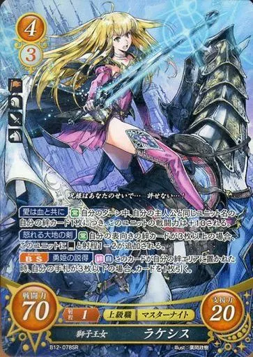Nombre comercial en japonés: TCGファイアーエムブレム0/SR/聖戦旗/[B12]ブースターパック「荒れ狂う破濤」 B12-078SR[SR]:獅子王女 ラケシス