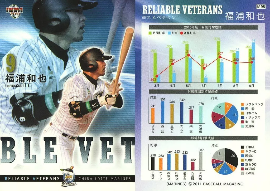 Nombre comercial en japonés: BBM/レギュラーカード/BBM2011 千葉ロッテマリーンズ M98[レギュラーカード]:福浦和也