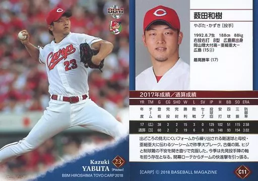 BBM/tarjeta regular / BBM2018 Hiroshima Toyo Carp C11 [tarjeta regular] : Kazuki Yabuta