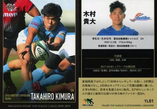 BBM / Regular Card / Toyota Automatic Finding Shutters / BBM2018 Japan Rugby Top League 2018-2019 TL61 [tarjeta regular] : Takahiro Kimura