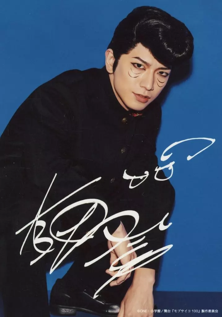 Nombre comercial en japonés: 生写真(男性)/俳優 大海将一郎(鬼瓦天牙)/上半身・背景青・印刷サイン入り・キャラクターショット/舞台「モブサイコ100~裏対裏~」3回観劇 リピーター特典ブロマイド