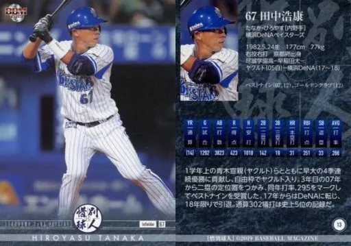 Nombre comercial en japonés: BBM/レギュラーカード/横浜DeNAベイスターズ/BBM2019 惜別球人 13 [レギュラーカード] : 田中浩康