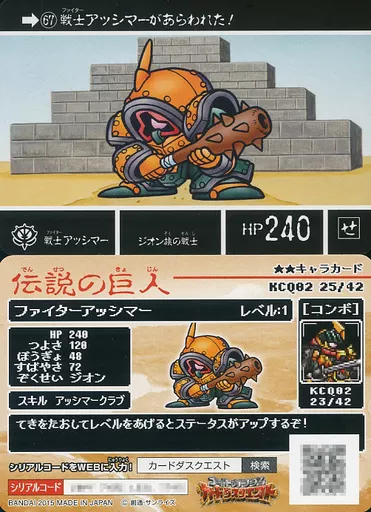 Nombre comercial en japonés: ナイトガンダム カードダスクエスト/ノーマル/第2弾 伝説の巨人 KCQ02 25/42[ノーマル]:[コード保証なし]戦士アッシマー