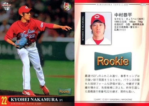 Nombre comercial en japonés: BBM/レギュラーカード/BBM2011 広島東洋カープ C11 [レギュラーカード] : 中村恭平(キラパラレル版)