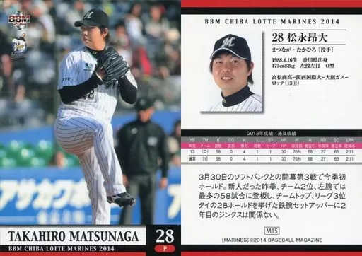 Nombre comercial en japonés: BBM/レギュラーカード/BBM2014 千葉ロッテマリーンズ M15 [レギュラーカード] : 松永昂大