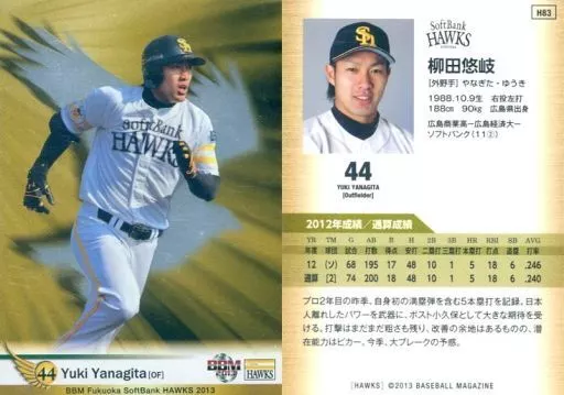 Nombre comercial en japonés: BBM/レギュラーカード/BBM2013 福岡ソフトバンクホークス H83 [レギュラーカード] : 柳田悠岐(パラレル版)
