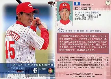 Nombre comercial en japonés: BBM/レギュラーカード/BBM2003ベースボールカード1st 155:松本高明「広島東洋カープ」