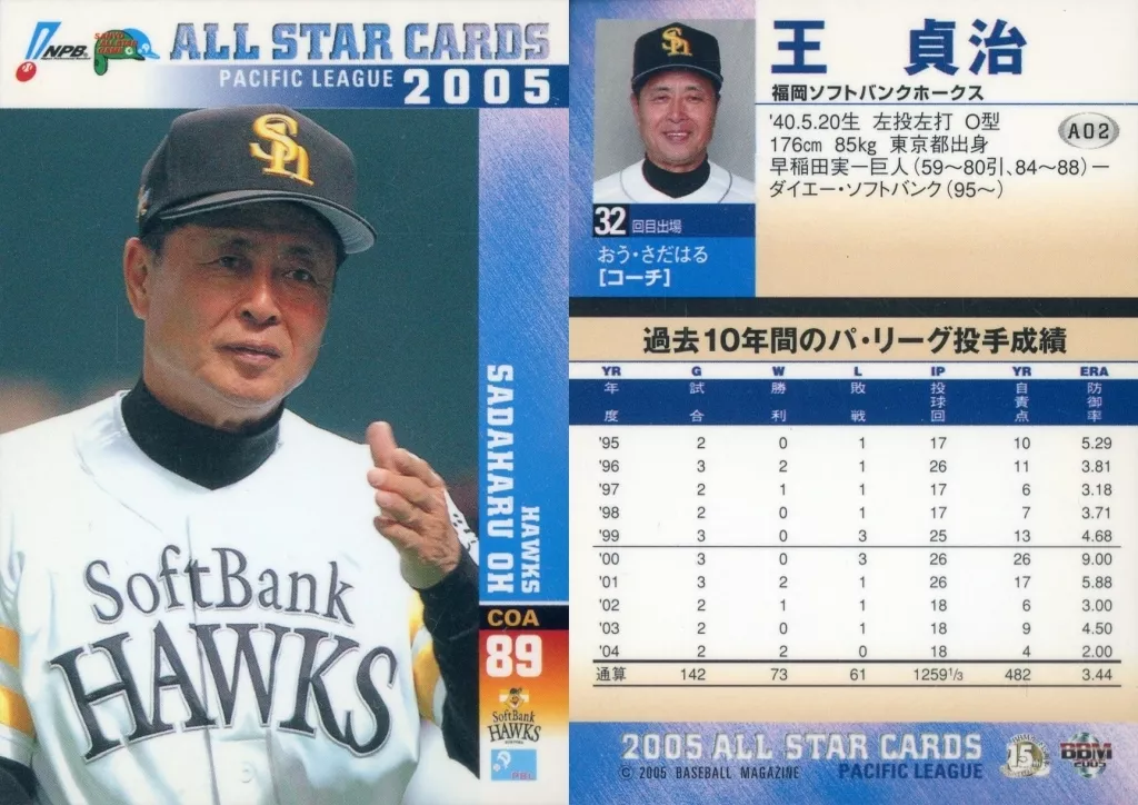 Nombre comercial en japonés: BBM/オールスターカード/BBM2005ベースボールカード A02:王貞治「福岡ソフトバンクホークス」