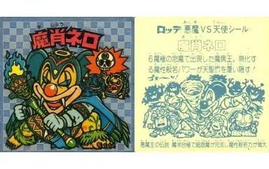 Nombre comercial en japonés: ビックリマンシール/銀タイル/悪魔VS天使 第8弾(アイス版) [銀タイル]:魔肖ネロ(E)