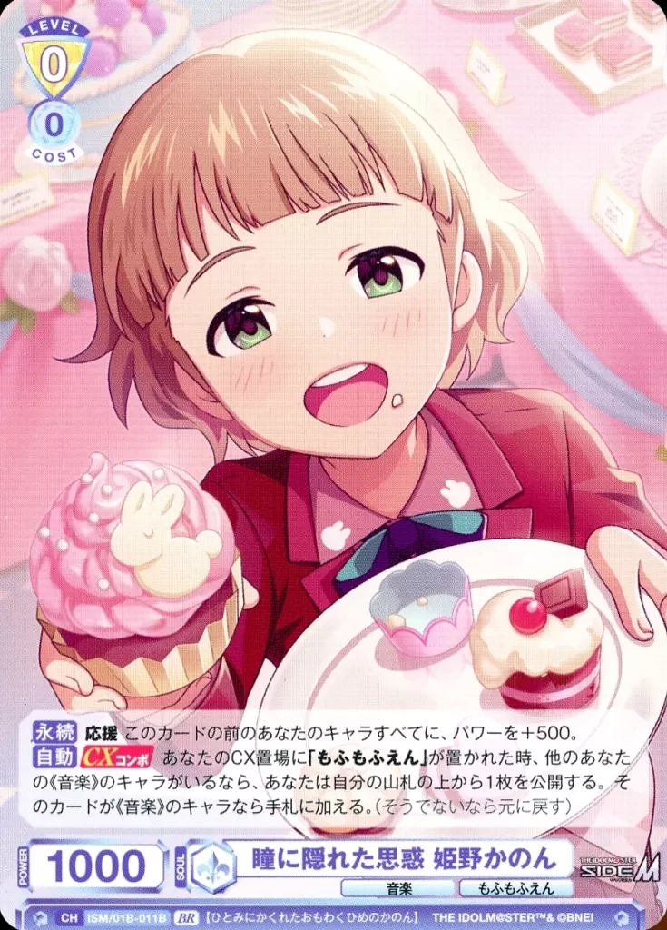Nombre comercial en japonés: ヴァイスシュヴァルツブラウ/BR/キャラ/ブースターパック アイドルマスター SideM ISM/01B-011B[BR]:瞳に隠れた思惑 姫野かのん