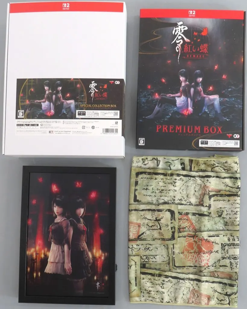 ■スペシャルコレクションボックス内容・書き下ろし小説入り公式設定資料集・蓄光ポストカード5枚セット・澪と繭の蝶型アクリルキーホルダー・零 ~紅い蝶~ REMAKE キービジュアル LEDアートボード・御札がぎっしり れいかん!?フェイスタオル
