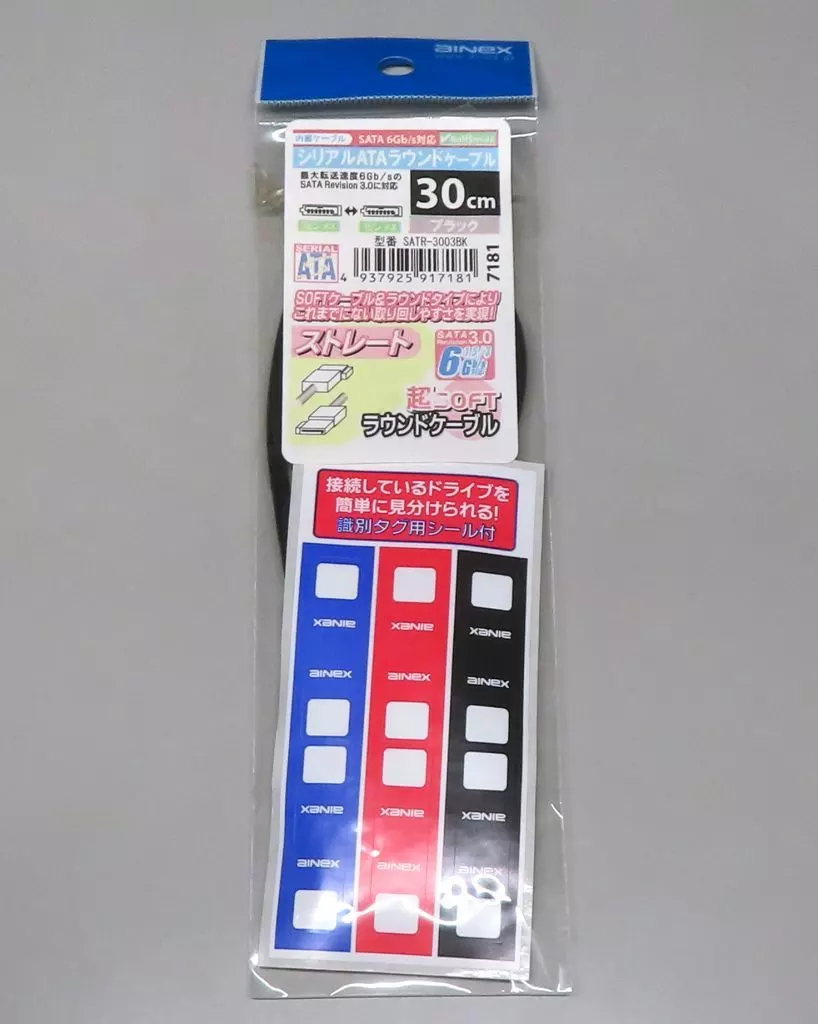 PCハード シリアルATAラウンドケーブル SATR-3000BKシリーズ 30cm (ブラック) [SATR-3003BK]