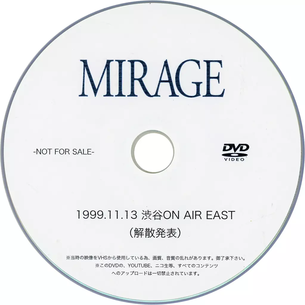 その他DVD MIRAGE 1999.11.13 渋谷ON AIR EAST(解散発表)
