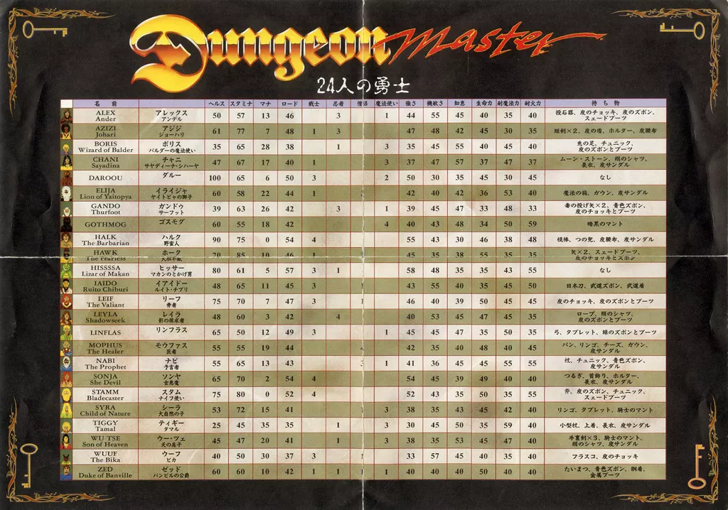 PC-9801/X68000ソフト [一覧表のみ]ダンジョンマスター