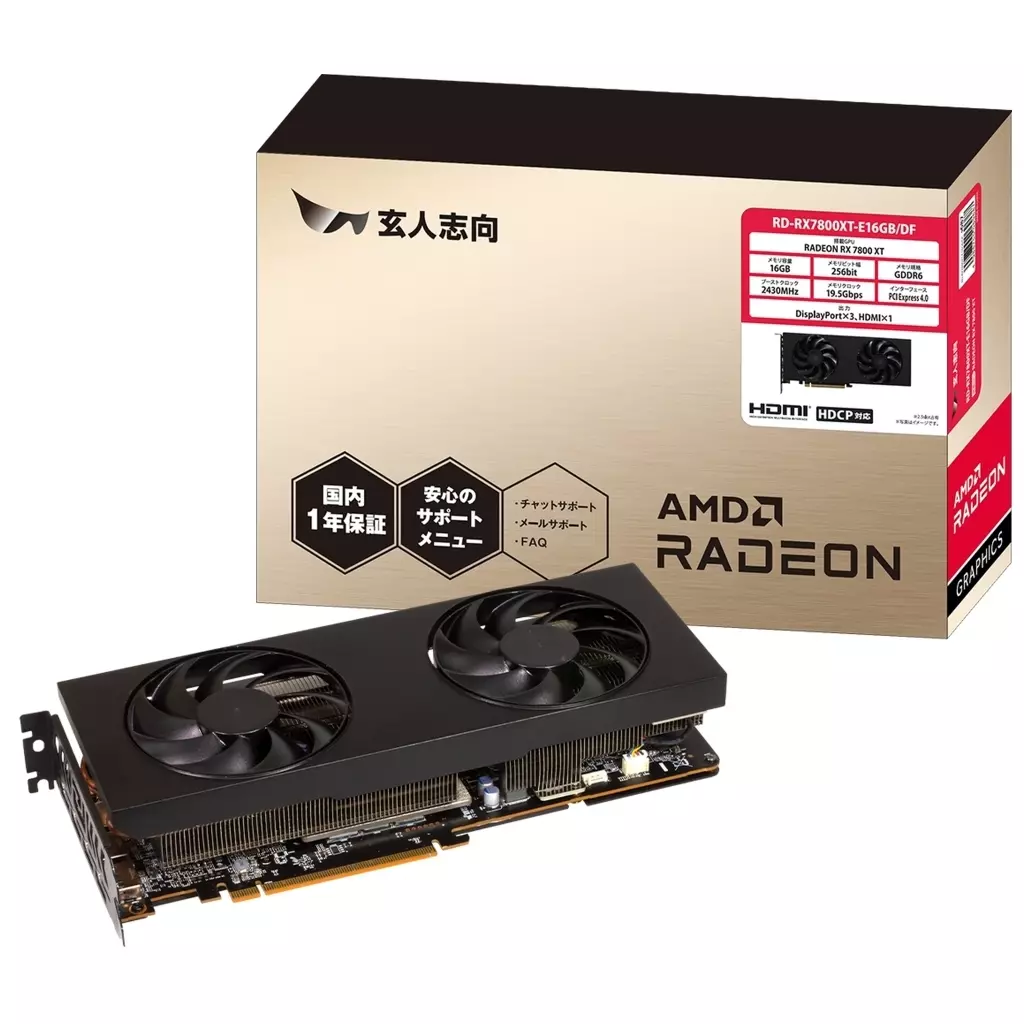 仕様搭載GPU:AMD Radeon RX7800 XTインターフェース:PCI-Express4.0メモリ規格:GDDR6コアクロック:最大2430MHzメモリ容量:16GBメモリスピード:19.5Gbpsメモリインターフェース幅:256-bit映像出力:DisplayPort×3、HDMI×1補助電源コネクタ:8-pin×2付属品:取付手順書、外箱保証:14日間返金保証付(メーカー整備品)
