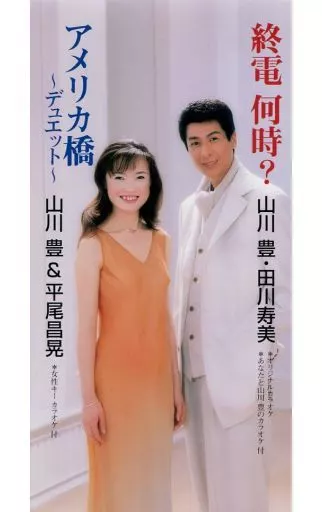 【曲目一覧】(1)終電 何時?(山川豊,田川寿美)(2)終電 何時?(オリジナル・カラオケ)(3)終電 何時?(あなたと山川豊のカラオケ)(4)アメリカ橋(山川豊&平尾昌晃)(5)アメリカ橋(女性キーカラオケ)【ジャンル】国内ロック&ポップス【レーベル】東芝【枚数】1 枚
