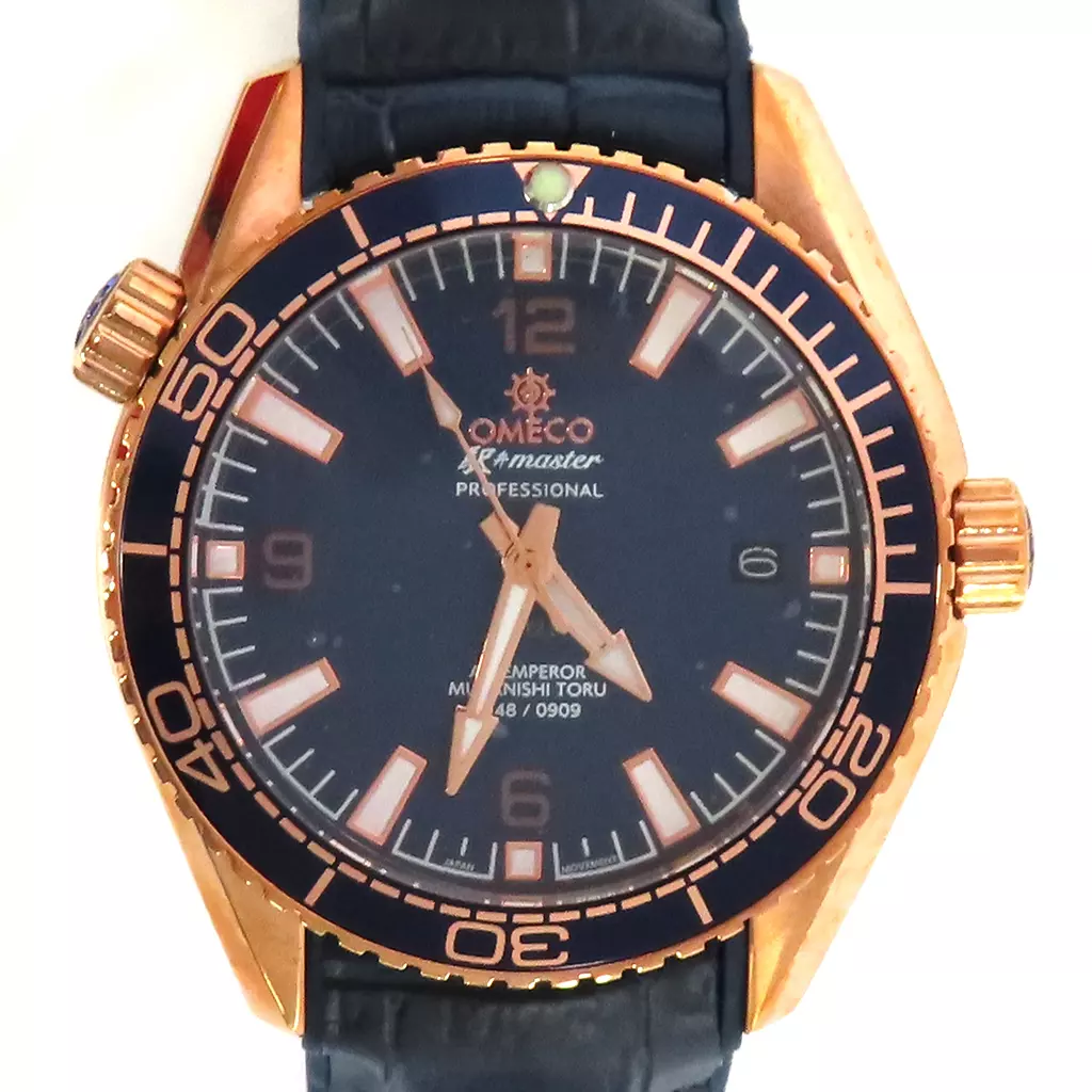 文字盤に「OMECO 駅弁master PROFESSIONAL」「AV EMPEROR MURANISHI TORU 1948/0909」の文字がデザインされています。