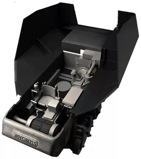 ブロンコとトランペッターはいずれもオチキスH39戦車の車体を用いた自走砲(7.5cm砲搭載型と10.5cm砲搭載型を発売していますが、両社とも車体内部の再現度はかなりあっさりしたもので、かつ不正確です。