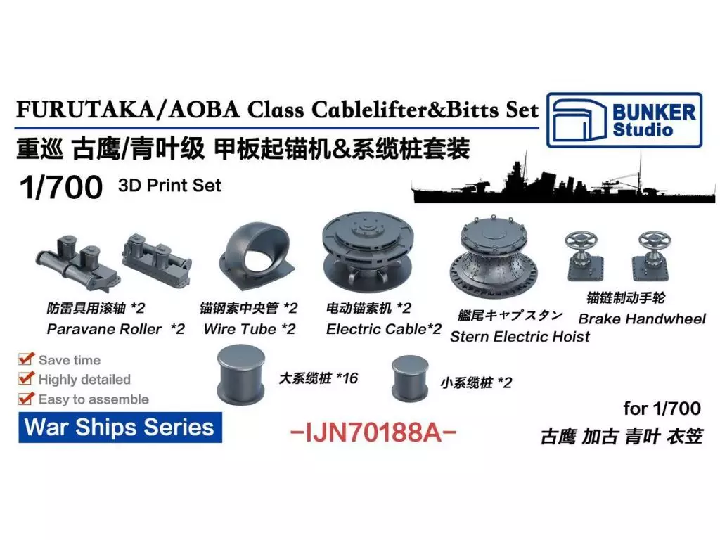 プラモデル 1/700 日本海軍 古鷹/青葉型用揚錨機 & 係船柱セット ディティールアップパーツ [BSTIJN70188A]