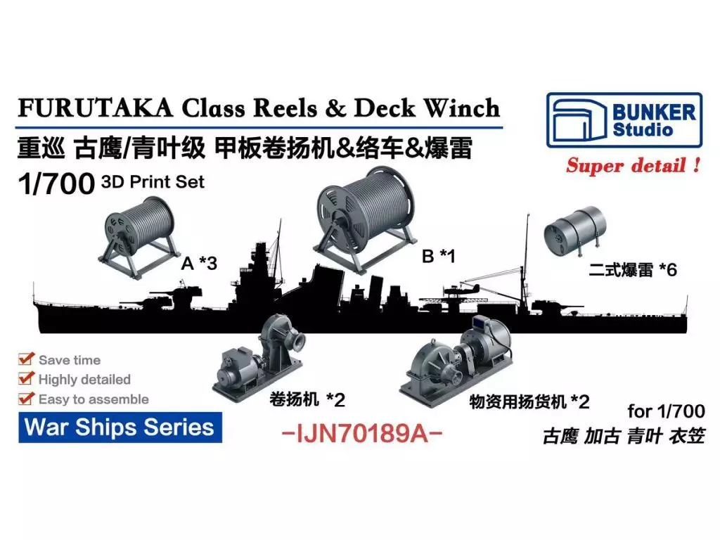 プラモデル 1/700 日本海軍 古鷹/青葉型用絡車 & 巻上げ機セット ディティールアップパーツ [BSTIJN70189A]