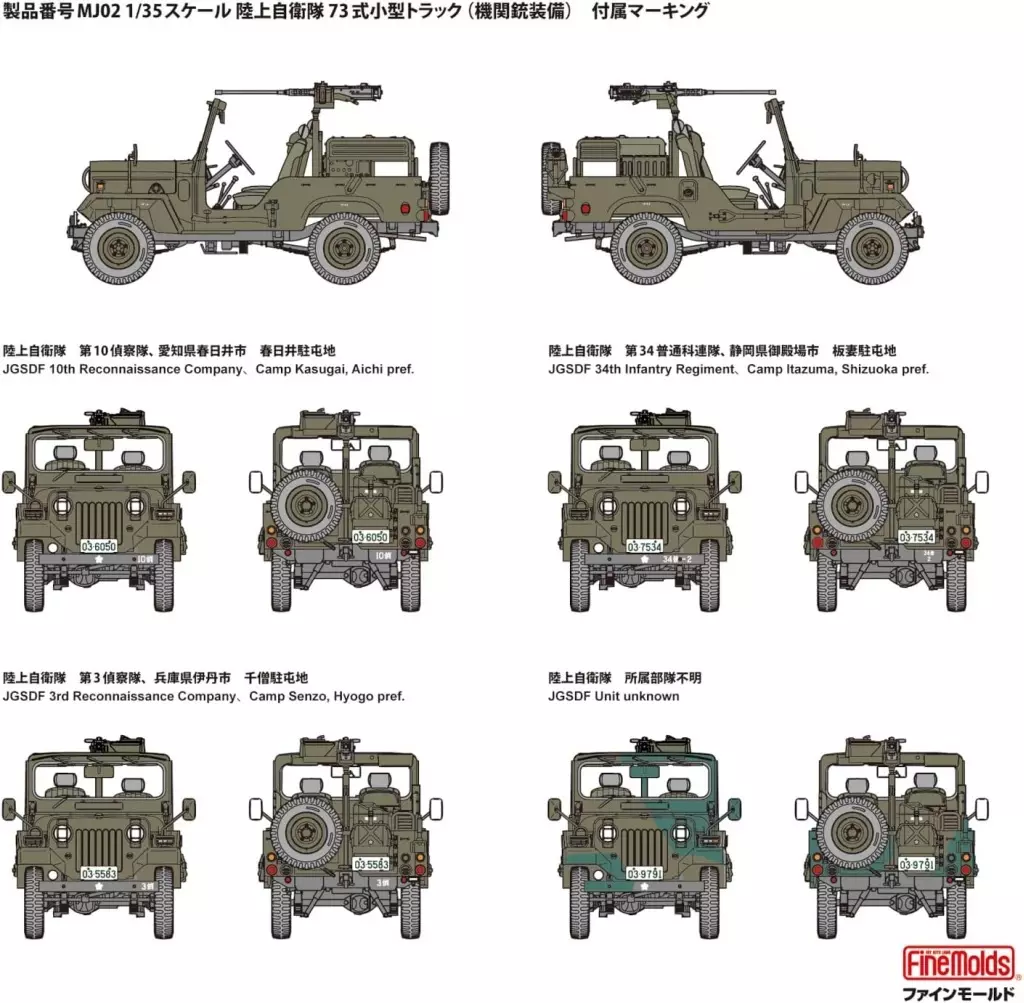 マーキングデカールには、春日井駐屯地 第10偵察隊、千僧駐屯地 第3偵察隊、板妻駐屯地 第34普通科連隊所属車両を再現。