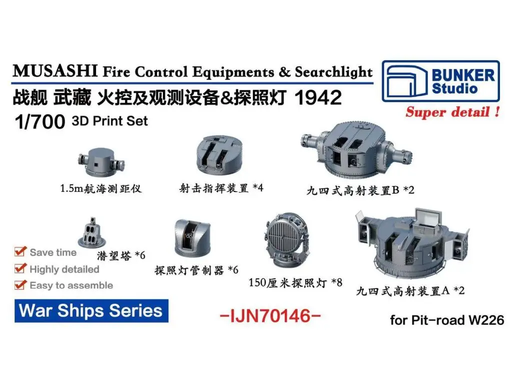 プラモデル 1/700 日本海軍 戦艦 武蔵用 火器管制装置 & 探照灯 1942 (ピットロード用) ディティールアップパーツ [BSTIJN70146]