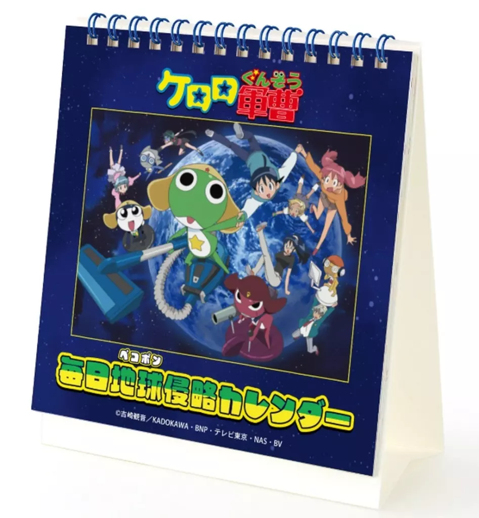 商品解説■アニメ『ケロロ軍曹』より、カレンダーの登場です。印象的なシーンを日替わりでお楽しみいただける日めくりカレンダーに仕上げました。1~31までの数字が入り、年月が経過してもお使いいただけるリングタイプの卓上カレンダーです。お部屋やデスクまわりなどに飾って、キャラクターとの日常をお楽しみください。【商品詳細】サイズ:約15.3×14.8cm仕様:16枚組(C)吉崎観音/KADOKAWA・BNP・テレビ東京・NAS・BV