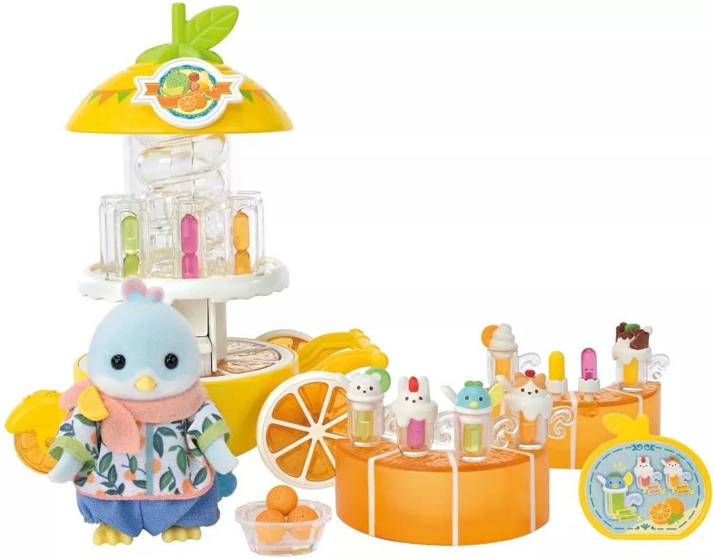 商品解説■「シルバニアファミリー」から、シトラスバードのジュース屋さんが登場!!【セット内容】シトラスバードの店長さん、本体、ふた、テーブルA、テーブルBフルーツ×3、ボウル、看板、オレンジジュース×4、メロンジュース×4ベリージュース×4、バナナジュース×2、アイススティック×2トッピング(ウサギ)、トッピング(ネコ)、トッピング(チョコレート)トッピング(バード)、トッピング(シロクマ)、トッピング(クリーム)、グラス×6【商品詳細】対象年齢:3歳以上