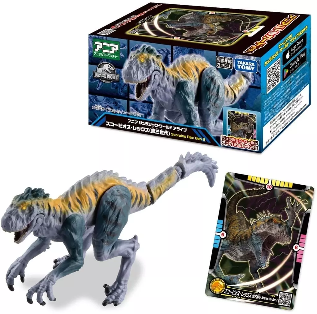 商品解説■「アニア」から、ジュラシック・ワールド アライブ スコーピオス・レックス(第三世代)が登場!!【商品詳細】付属品:アニアバトルカード対象年齢:3歳以上(C)Universal City Studios LLC and Amblin Entertainment、Inc. All Rights Reserved. (C)TOMY
