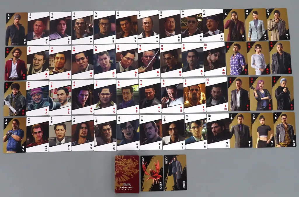 商品解説■「セガ ラッキーくじONLINE 龍が如く 20周年記念 第一弾 龍と生きる」D賞景品の究極と至高のトランプ 桐生一馬です。【商品詳細】<セット内容>カード×54(ジョーカー×2含む)対象年齢:15歳以上