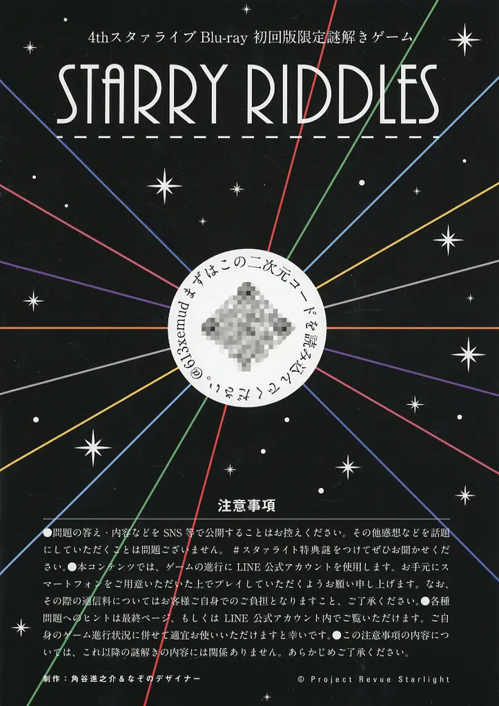 商品解説■こちらの商品は「Bl u-ray 少女☆歌劇 レヴュースタァライト 4thスタァライブ ”Starry Ocean” 初回版」のきゃらあ特典になります。なぞのデザイナー、角谷進之介による新規制作のパワーアップした謎解きも掲載!■ゲーム概略■プレイ人数:1人デザイナー:なぞのデザイナー、角谷進之介<内容物>本誌 1部封筒 1個