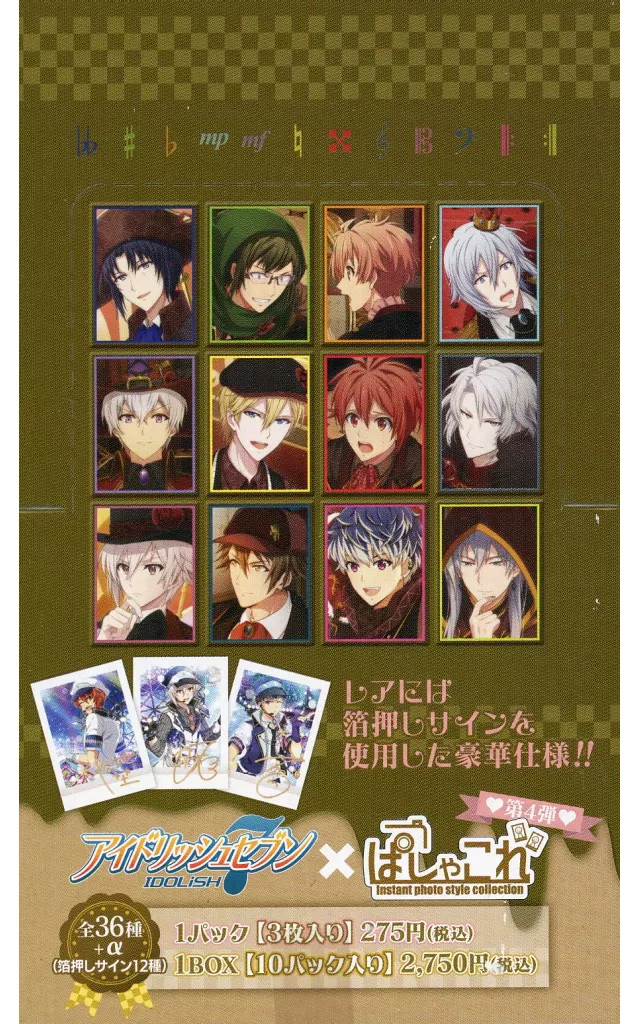 商品解説■「アイドリッシュセブン」にインスタントカメラ写真風デザインのコレクションアイテム「ぱしゃこれ」の第4弾が登場!!レアには銀箔押しサインを使用した豪華仕様!!大好きなキャラクターをコルクボードに飾ったり手帳に挟んで持ち歩いたりして楽しんでね♪【商品詳細】1パック:3枚入りカード種類数:全36種+α(箔押しサイン12種)