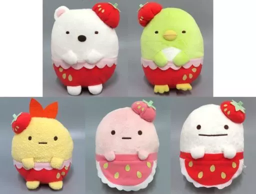商品解説■こちらの商品は「すみっコぐらし いちごフェア ぬいぐるみ Part2」の全5種セットとなります。お揃いのいちごのコスチューム!いちごのベレー帽がかわいいすみっコたちです!【商品詳細】<セット内容>しろくまぺんぎん?えびふらいのしっぽたぴおかおばけサイズ:約16cm
