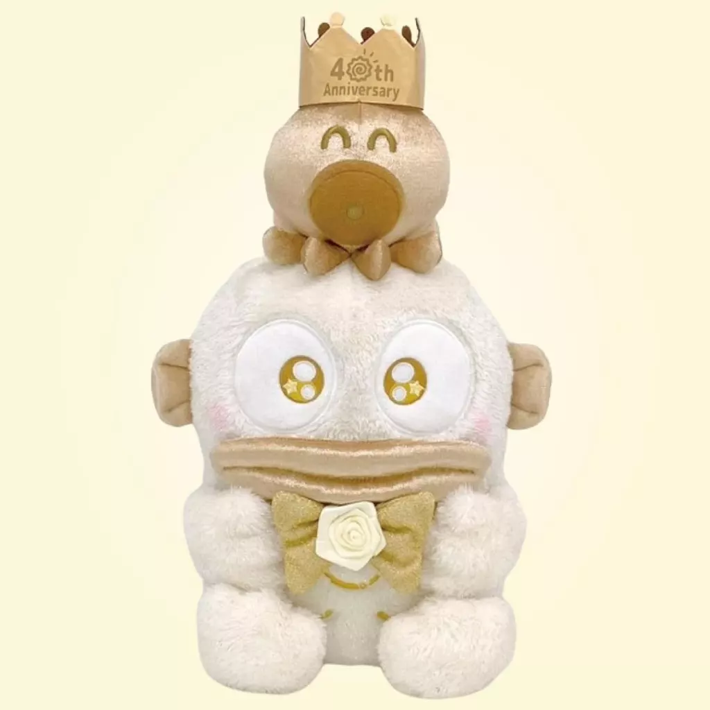 商品解説■3月14日はハンギョドンのお誕生日♪ゴールドとホワイトのスペシャルカラーで40周年のお誕生日をお祝いするゴージャス&ロマンチックなぬいぐるみ☆【商品詳細】サイズ:約H38×W23×D22cm