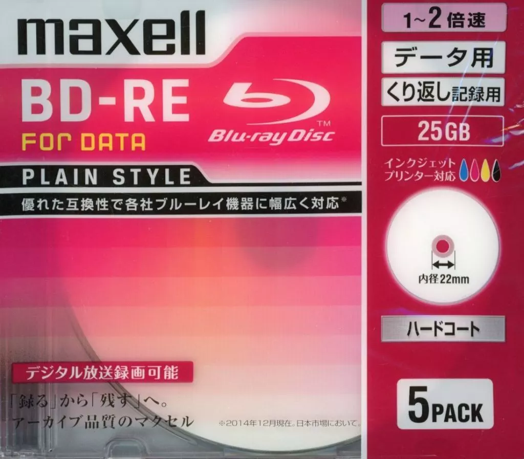 BD-R 日立マクセル データ用BD-RE 25GB 2倍速 5枚パック [BE25PPLWPA.5S]