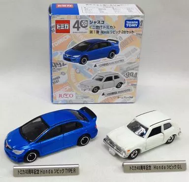 商品解説■こちらはジャスコ特注モデル「二世代トミカ 第1弾」、Honda シビック 2台セットです。それぞれにネームプレートが付属しています。【商品詳細】<セット内容>1/64 Honda シビック Type R(ブルー)、1/57 Honda シビック GL(ホワイト)、ネームプレート×2サイズ:Honda シビック Type R/全長約7cm