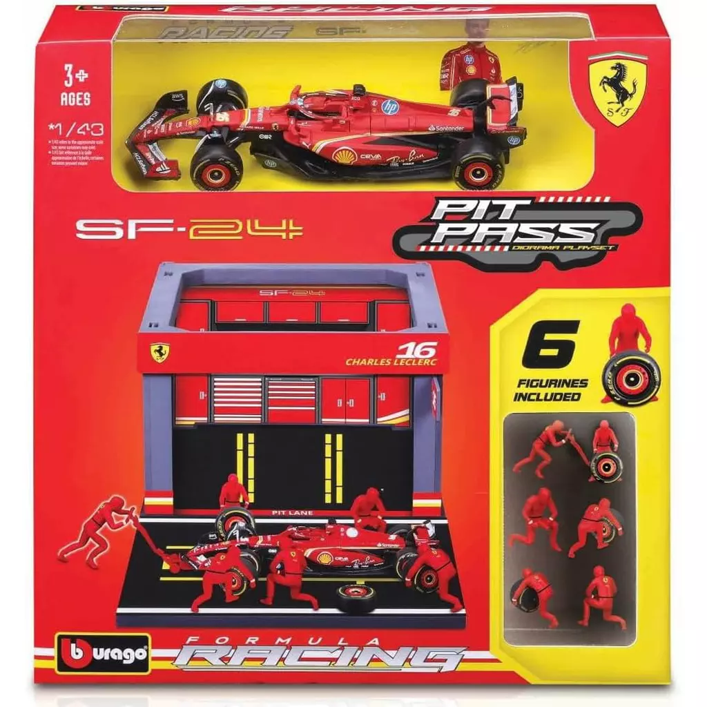 ミニカー 1/43 フェラーリ PIT PASSセット SF-24 C.サインツ Jr. #55(クルー×6pcs、パドックガレージ) [18-36862S]