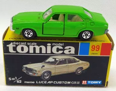 商品解説■「トミカ」に、1/62 マツダ ルーチェ APカスタム GRII(グリーン)がラインナップ。【商品詳細】サイズ:全長約7cm仕様:ドアー開閉/スーパースピード/サスペンション