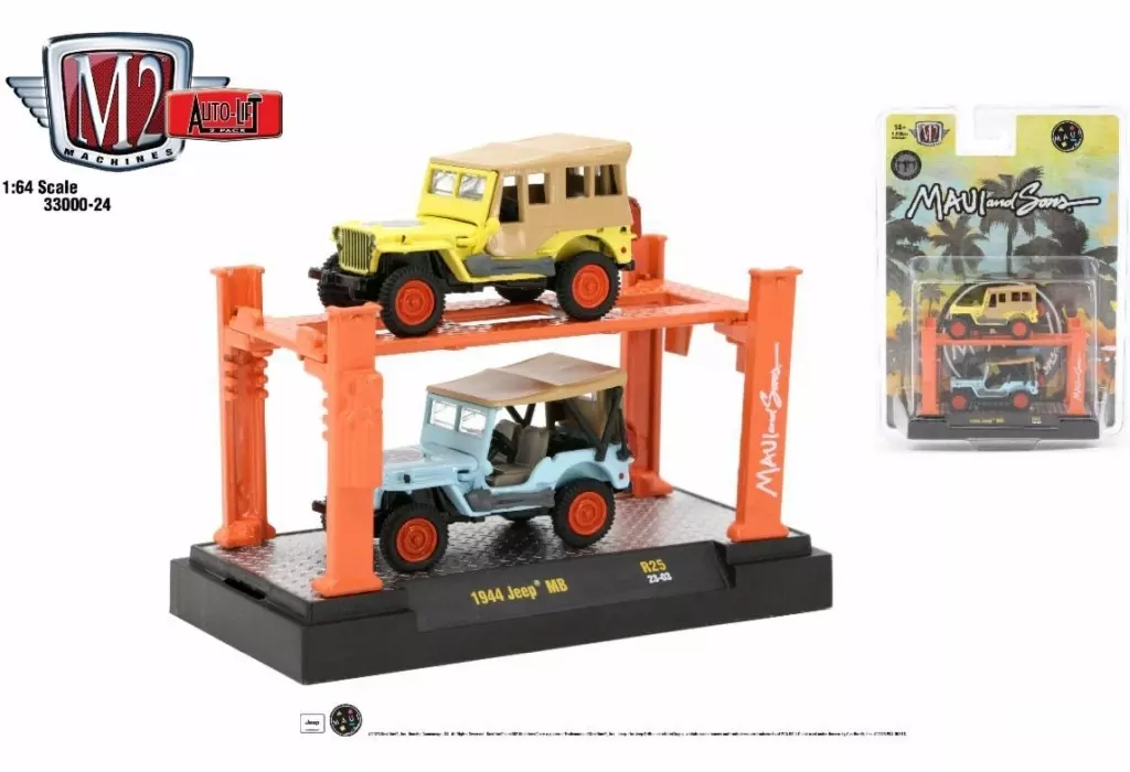 ミニカー 1/64 1944 Jeep MB “MAUI & SONS” - Light Blue + Yellow [33000-25]